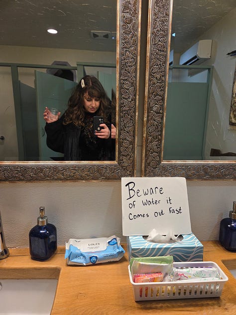Plus, I didn’t want to try to find a bathroom at the unfamiliar restaurant I’ve just left, so I have to pee so badly that I start crying.