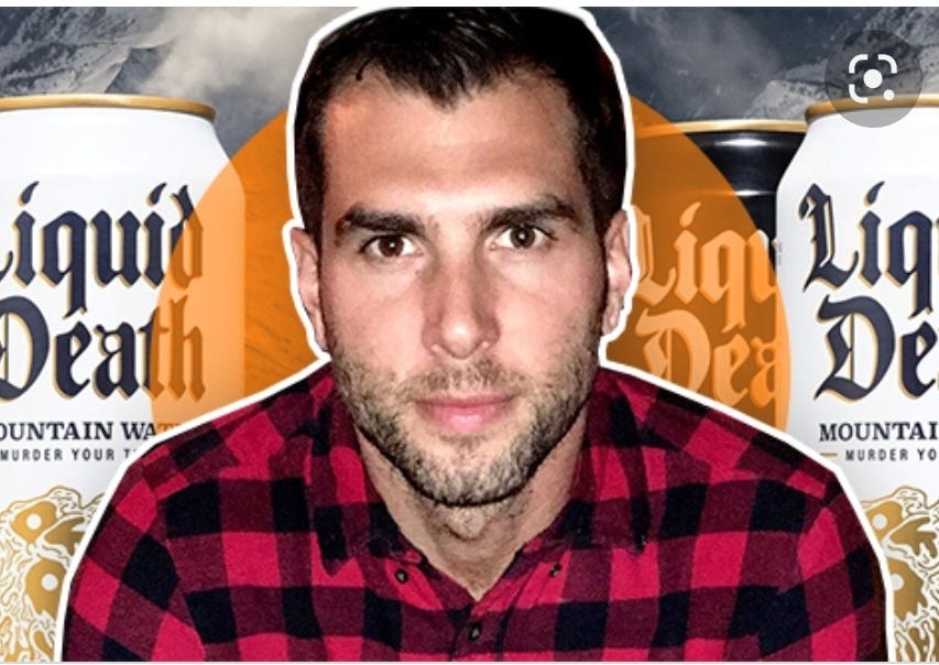 In 2019, Mike Cessario created a viral Facebook video featuring a man being waterboarded by a model with the soon-to-be famed canned water, Liquid Death. The product didn’t even exist at the time. He used the interest generated by the sexy waterboarding video to secure investors that gave legs to his idea for canned water that is “cool” (his go-to word). Per Cessario, water is too often marketed to “yoga moms” and models (read: women). Was he interested in water specifically? Conclusively the answer was and remains NO. But with a heavy interest in the punk rock world and a disdain for pretty much anyone that’s attended business school, Mike set out to create a brand that rejected all traditional marketing.