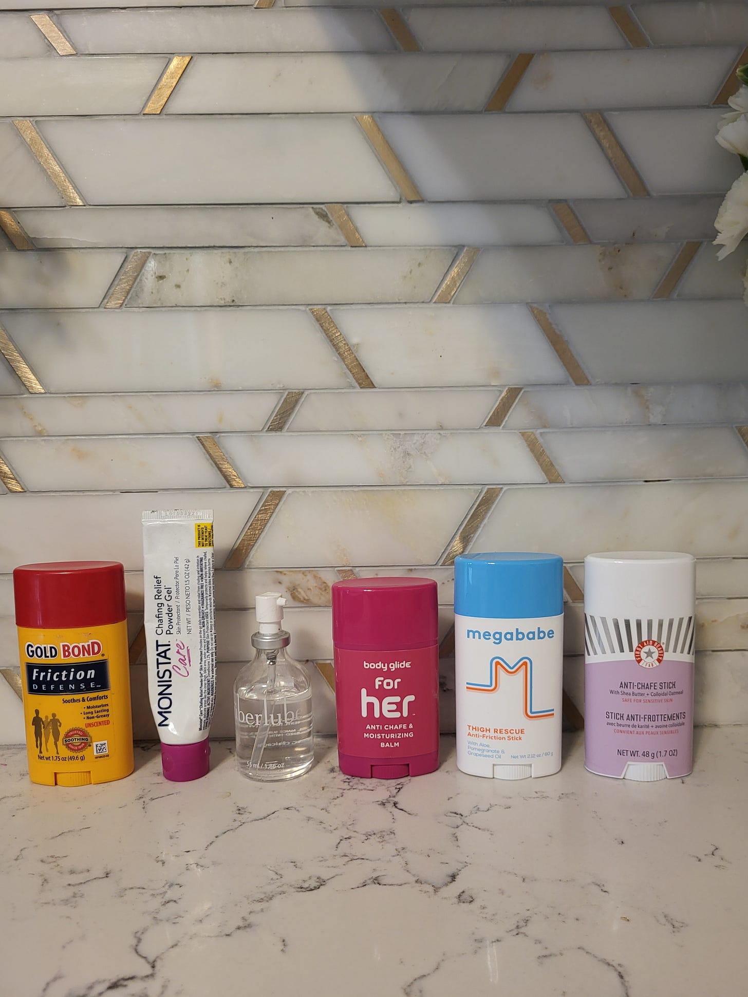 Someone I follow on social media posted a question regarding thigh chafe solutions and was generous enough to post some of the responses they received, mostly revealing the other solutions on this list. But there was one recommendation of this specific type of lube, and I was intrigued. Somehow, I’d never considered such a thing. But I purchased a little glass pump of this and it still sits on my desk (I work from home!), and I reach for it nearly every time I use my walking pad. This stuff definitely works and lasts longer-term, but its application isn’t simple and there’s nothing portable about it.